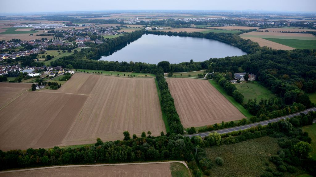 Rolf erklärt alle Procedures: Start auf Piste 24, dann 90° links Richtung Zülpich. Steigflug, Reiseflug, austrimmen. Bei blauem Himmel und bestem Wetter (um 1930 null Thermik) erhalte ich zum ersten Mal die Kontrolle: Sauber knüppeln ist angesagt, oder in bester Fliegersprache: Koordiniertes Kurven. Nach kurzer Info über negatives Wendemoment und wie man es verhindert folgen ruhige und vorsichtige Kurven mal nach links, mal nach rechts. Dabei die tiefstehende Sonne auf von oben wunderschöner Landschaft: Die Seen von Zülpich und Füssenich, das zur Eifel hin ansteigende Gelände, gekrönt von ein paar einsamen Schäfchenwolken.